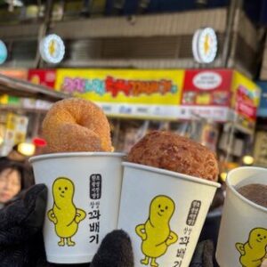 帰り際に、市場の入り口付近にある大行列のお店「広蔵市場チャッサルクァベギ(광장시장 찹쌀꽈배기)」へ!