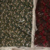 (※写真だと透明の袋に畳んで入っていて、ただの布の塊みたいになっちゃってますが…笑。広げるとレトロな花柄と赤系のデザインですごく可愛いんです♡)