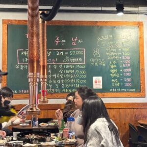 このチョークで書かれた「地元感」のある雰囲気が、隠れ家っぽくてすごく素敵なんです。済州島産のオギョプサルやサムギョプサルなど、こだわりのメニューが並んでいます。