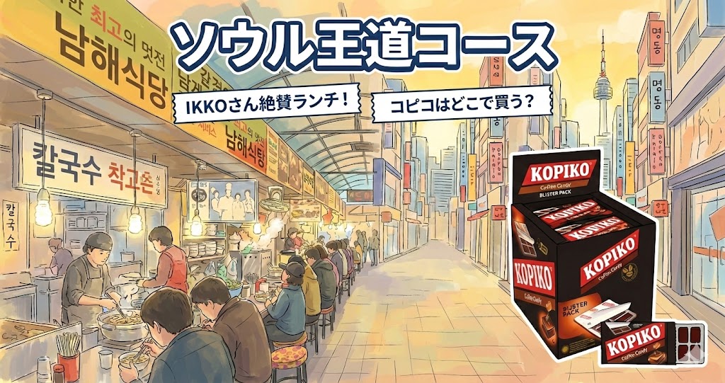 今日は、明洞からソウル駅エリアを歩いて楽しむ「ソウル王道・徒歩コース」をご紹介します。 IKKOさんが絶賛した南大門ランチや、ロッテマートでの爆買い、そして「韓ドラのあの飴」を探し求めたリアルな体験談もお届けします!